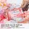 Miss Dior Eau de Parfum est un "millefiori" olfactif, où une note de rose onctueuse est brodée de notes de muguet frais, d'un accord de pivoine et de notes d'iris. En fond, des touches de bois tendres enveloppent la composition.