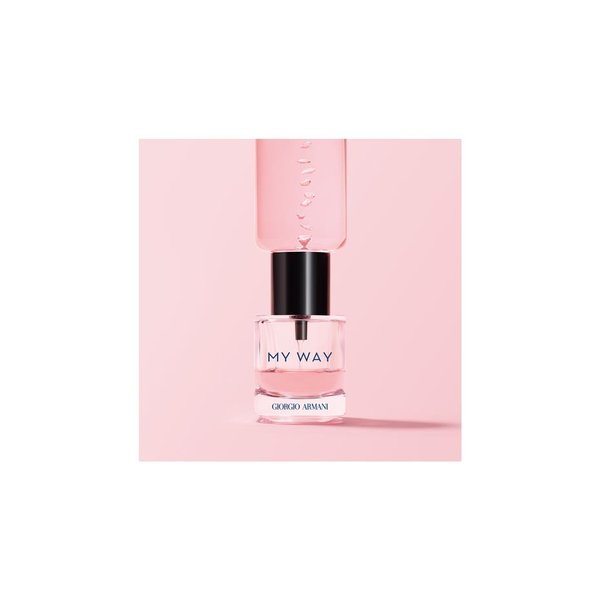 MY WAY Eau de Parfum de Giorgio Armani, le parfum des expériences et des connexions pour les femmes ouvertes d'esprit, curieuses et authentiques, prête à élargir leurs horizons et à vivre des rencontres significatives à travers le monde. Cette Eau de Parfum féminine est la rencontre entre des ingrédients issus de cultures durables et solidaires. La bergamote de Calabre & la fleur d'oranger d'Égypte rayonnantes rencontrent un cœur fleuri de tubéreuse et de jasmin originaires d'Inde. Un soupçon de bois de cèdre vibrant et de vanille chaude de Madagascar, combinés aux muscs blancs confèrent à MY WAY son caractère authentique. Le bouchon bleu et or du flacon est une métaphore du monde. Le bleu est la couleur universelle qui nous unit tous. il est entouré d'une bague en or, estampillée de la signature Giorgio Armani, symbole d'un parcours unique illuminé par chaque rencontre en cours de route. Ce parfum luxueux est rechargeable. C'est un flacon talisman qui encapsule les expériences et rencontres vécues. I AM WHAT I LIVE (*Je suis ce qui je vis) Maintenant disponible dans un nouveau format de recharge (100ml).