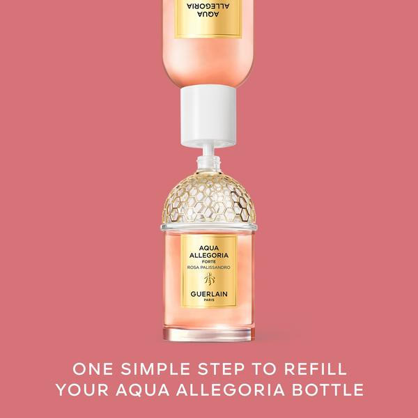 La recharge 200 mL permet de prolonger la durée d'utilisation du flacon Aqua Allegoria sans compromis sur la qualité. Le vaporisateur se dévisse manuellement pour pouvoir remplir à nouveau le flacon grâce à une recharge facile d'utilisation, bénéficiant d'un système anti-goutte. Elle ne peut être utilisée seule et est uniquement compatible avec les flacons 125 mL et 75 mL rechargeables.