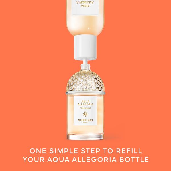 La vivacité radieuse et acidulée du pamplemousse exaltée par la note fruitée et vibrante du bourgeon de cassis. Le patchouli confère à l’ensemble toute sa sensualité. Créez votre propre signature en associant Pamplelune avec Bergamote Calabria ou Orange Soleia. Afin de créer votre propre signature olfactive, faites votre choix parmi les duos recommandés et parfumez-vous successivement, en quantités égales, avec les deux Aqua Allegoria de votre choix. Véritable symbole de l’engagement de Guerlain pour la planète, les parfums Aqua Allegoria sont composés jusqu'à 95% d'origine naturelle*. L’alcool de betterave française contenu dans leurs formules est issu de filière engagée pour une agriculture responsable. *90% à 95% d’ingrédients d’origine naturelle, conformément à la norme ISO 16128, calcul incluant l’eau. Recharger votre précieux flacon Aqua Allegoria d’un geste simple grâce au format recharge 200ml de Pamplelune.