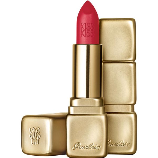 Guerlain imagine KissKiss Matte, le rouge à lèvres mat hydratant et repulpant, intense comme un rouge à lèvres et confortable comme un baume ! L'imperceptible extrait de piment qui s'y glisse donne l'apparence d'une bouche volumineuse tandis que les huiles précieuses et l'acide hyaluronique lissent et hydratent les lèvres. Le rouge se décline en 9 teintes envoûtantes pour toutes les occasions. Le packaging iconique KissKiss se pare d'une robe dorée et mate.