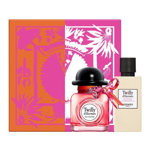 Le coffret Twilly d'Hermès Eau Poivrée est composé d'une Eau de Parfum vaporisateur 50ml et d'un lait hydratant pour le corps 40ml.