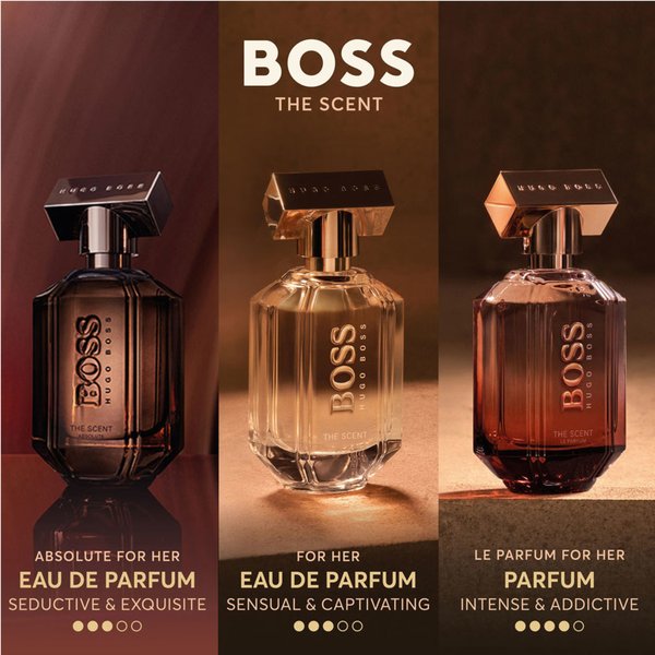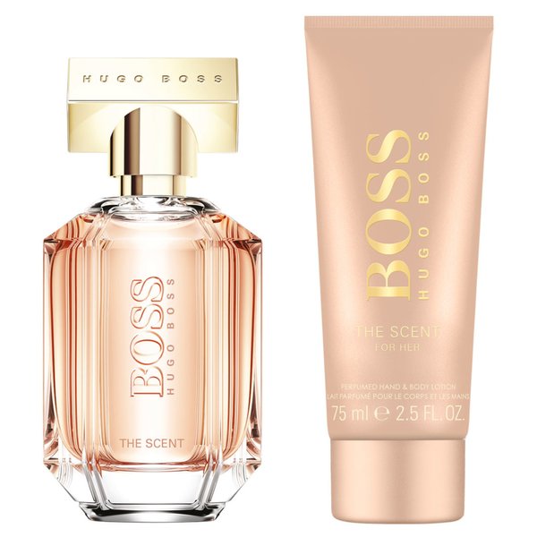 Invitez-la à plonger dans l’été avec l’irrésistible coffret cadeau BOSS The Scent For Her Eau de Parfum. Inspiré par la nouvelle identité de BOSS, ce cadeau à l’emballage doré est le cadeau idéal pour vos proches. Cette Eau de Parfum envoûtante pour femme dégage élégance féminine sublime, chaleur et séduction et se déploie progressivement au fil du temps. Les notes de tête fruitées et florales de la pêche sucrée et du freesia se rencontrent dans une combinaison exquise et saisissante. Le cœur chaud et dense de la fleur d’Osmanthus orientale commence à se révéler, tandis que l’éclat initialement léger et délicat du parfum évolue vers une intensité plus sombre. Enfin, un fond irrésistiblement riche de cacao torréfié confère à ce parfum une impulsion addictive qui éveille les sens et laisse, dans son sillage, un souvenir inoubliable. Le Lait corporel BOSS The Scent For Her confère une légère touche de parfum irrésistible au rituel quotidien de la femme. Ce coffret cadeau de printemps contient : - 1.7 oz/50 ml BOSS The Scent For Her Eau de Parfum - 2.5 oz/75 ml BOSS The Scent For Her lait pour le corps.