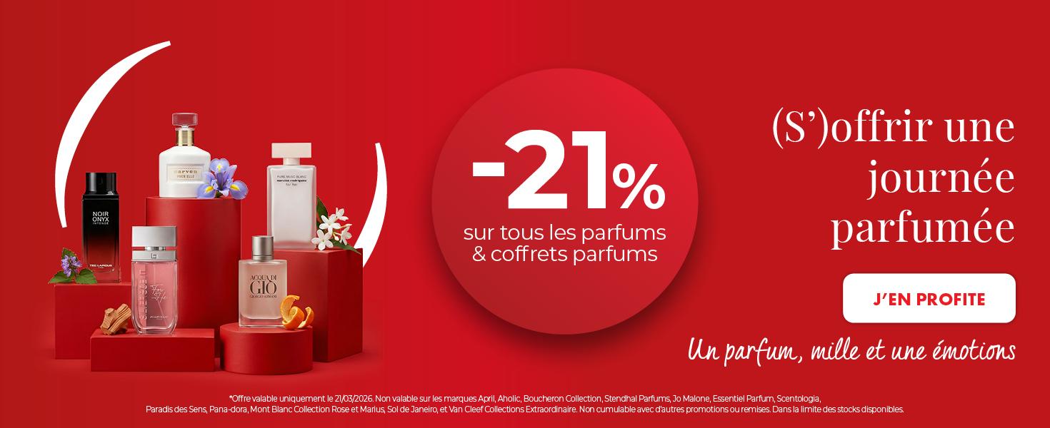 profitez d’une remise exceptionnelle de -21 % sur tous les parfums & coffrets.