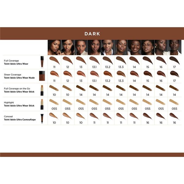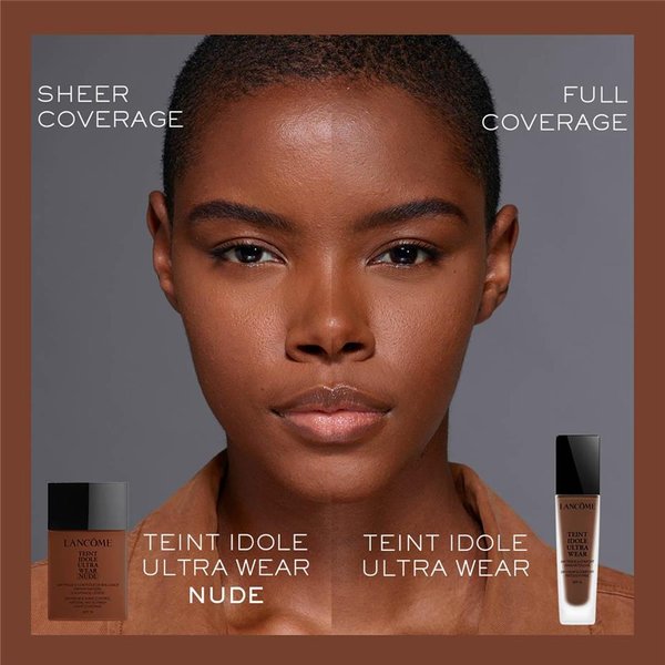 Teint Idole Ultra Wear Nude se décline en 40 teintes pour s'adapter à toutes les carnations, dans un flacon facile à emporter partout.