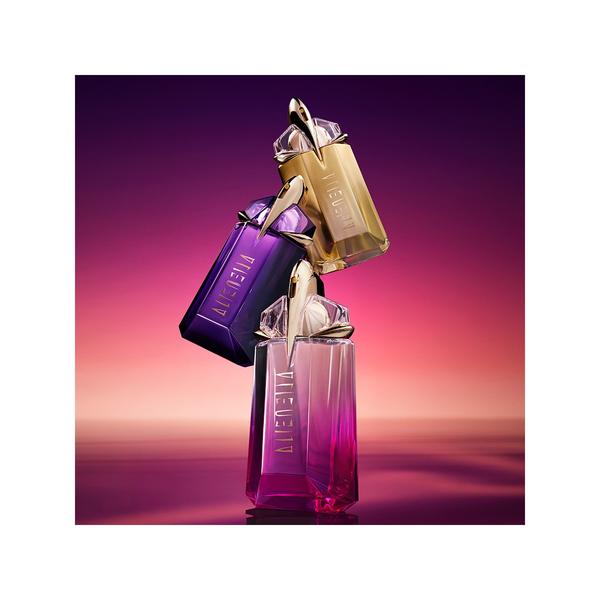 Fidèle à la vision avant-gardiste de Mugler, le luxueux flacon Alien est à la fois un talisman et un bijou sculptural. L'emblématique flacon facetté rayonne d'un ombré envoûtant, du rose juteux au cristallin, incarnant la pure gourmandise de la nouvelle signature framboise d'Alien Pulp. Un capuchon vaporisateur transparent couronne sa silhouette séduisante. Une griffe dorée ultra-sensuelle évoque l'interdit, tandis que le nom du parfum scintille d'un or extraterrestre.