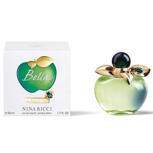 En 2018, Les Belles de Nina Ricci dévoile le troisième chapitre de leur saga... Bella Eau de Toilette de Nina Ricci. Une nouvelle princesse des temps modernes rejoint le duo : Bella. La pomme iconique se pare d'un vert pop aussi audacieux que magnétique. Un flacon témoin de l'irrévérence et de la féminité de Bella, à la couleur de sa fougue. Les feuilles d'or bruissent sous les pattes d'une mystérieuse coccinelle, inséparable complice de cette nouvelle eau de toilette. Dans le sillage de cette héroïne, un floral acidulé vibrant où la gourmandise audacieuse de la rhubarbe est rafraîchie par la féminité romantique de la gelée de Rose.