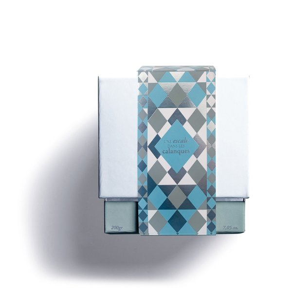 Bougie parfumée en porcelaine non emaillée de Limoges, pour un toucher incomparable. Parfum exclusif 'Une escale dans les calanques' issu de la Haute Parfumerie de Grasse, mis en cire par notre Maître cirier à Grasse.