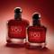 De iconische STRONGER WITH YOU-flacon straalt een krachtige, vernieuwde allure uit, waarbij het rokerige parfum schittert in een diepe, indrukwekkende rode tint. De strakke lijnen en rondingen van de flacon verwijzen subtiel naar een mannelijk silhouet, terwijl de zwart-zilveren dop het kenmerkende motief van in elkaar grijpende ringen draagt, dat de essentie van de geuren definieert.
