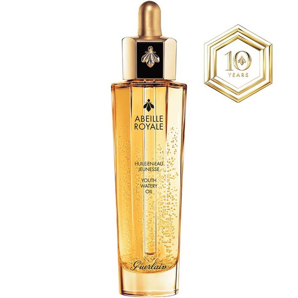 De Huile-en-eau Jeunesse Abeille Royale hult de huid in het allerbeste van wat Guerlain te bieden heeft: honing van de zwarte bij van Ouessant en exclusieve Royal Jelly. Deze revolutionaire formule combineert de kracht van een serum, de rijkdom van een olie en de frisheid van een lotion. De huid wordt gestimuleerd, bolt op en wordt in geen tijd spectaculair glad. De microcapsules van olie geven hun herstellende werkzaamheid op het laatste moment af*, en de teint gaat stralen. De huid voelt ongelooflijk zacht aan, als een babyvelletje. *In-vitrotests op ingrediënten.