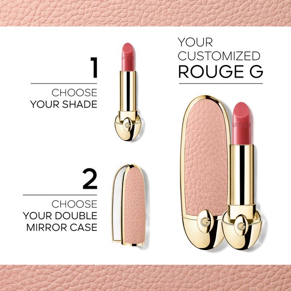 De satijnen en fluweelmatte formules van deze nieuwe generatie Rouge G gaan gepaard met een ultralichte, smeltende textuur voor een blote-lippengevoel en 16 uur lang comfort. De satijnen formule omhult de lippen met een crèmige textuur om ze voller te maken en ze een perfecte ronding te geven. De zijdeachtige finish zorgt voor een langdurige satijnen glans. De fluweelmatte formule maakt de lippen glad en omhult ze met een ongeëvenaarde zachtheid voor een fluweelachtig resultaat en zorgt voor een voorbeeldige fixatie gedurende 12 uur. Rouge G is verkrijgbaar in een reeks tinten voor alle huidtinten en stijlen. Elke tint is ontwikkeld door de Guerlain laboratoria met pigmenten die één voor één zijn verwerkt en versterkt met de kleurversterkende kracht van Abessijnse olie voor levendige, heldere tinten.