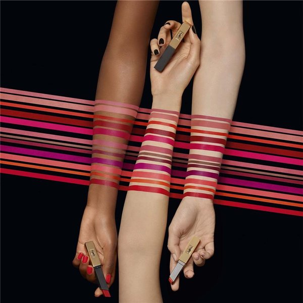 Couture signatuur, nonchalante houding. Rouge Pur Couture The Slim is verkrijgbaar in 24 Couture tinten.