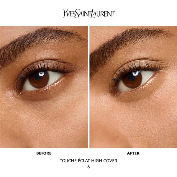Voor de eerste keer is het iconische licht van Touche Eclat, door Yves Saint Laurent Beauté, beschikbaar in een concealer met een hoge dekking. In één enkele toepassing corrigeert de Touche Eclat High Cover Stylo onmiddellijk donkere kringen, tekenen van vermoeidheid en eveneens onvolkomenheden van de huid. De concealer maakt de teint egaal met een natuurlijke en lumineuze afwerking, zonder maskereffect. Met een hoge concentratie in pigmenten, zorgt Touche Eclat High Cover Stylo voor een perfecte afwerking gedurende de dag dankzij zijn lange houdbaarheid.